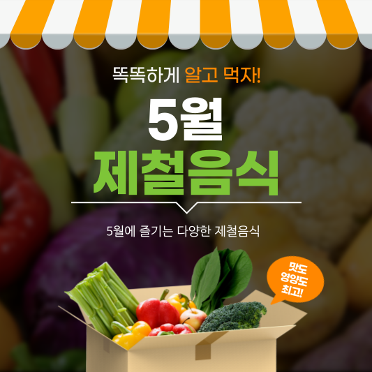 안녕하세요, 장마드꼼입니다~! 벌써 따뜻한 햇살이 가득한 5월이네요. 이렇게 좋은 날씨에는 제철 음식을 먹으며 계절을 만끽하는 것만큼 좋은 것이 없죠. 그래서 오늘은 5월에 맞는 다양한 제철 음식들을 알아보고 함께 즐겨보려고 해요. 여러분도 저와 함께 계절의 여왕, 5월의 풍미를 가득 즐겨보아요~!